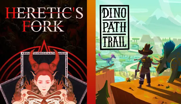 The Heretic's Fork x Dino Path Trail bundle brings together two distinct titles that challenge players in different ways. At one end, you have the survival chaos of Dino Path Trail, where you navigate a perilous world filled with dinosaurs and outlaws. On the other, Heretic's Fork places you in the understated yet demanding role of a Hell manager, requiring deck-building acumen to maintain order in the underworld. This bundle is ideal for players craving variety and depth across different gameplay experiences.