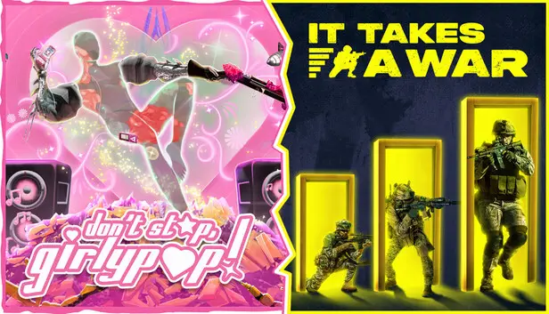 As you traverse through the two games, the visual styles play a significant role in shaping the overall experience. Don’t Stop, Girlypop! attributes its look to a colorful, almost chaotic palette reflective of its fast-paced action. In contrast, It Takes a War opts for a gritty, more realistic approach, immersing players in a serious combat environment. Together, these contrasting styles enrich the bundle and showcase the diversity in artistic expression.