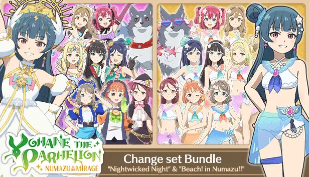 This bundle features two distinct change sets: "Nightwicked Night" and "Beach! in Numazu!!". Each set transforms Yohane’s look while also updating the costumes of allies, adding visual variety to battles. Players can experience a shift in gameplay dynamics as aesthetics contribute to the enjoyment of engaging in combat, making each encounter feel fresh and vibrant.