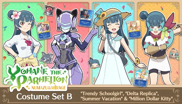 Yohane the Parhelion - NUMAZU in the MIRAGE - Costume Set B invites players to expand their wardrobe with a remarkable collection of four exclusive costumes. Perfect for enhancing the gameplay experience on PC, this bundle not only provides stylish options but also boosts gameplay mechanics with unique Starter Cards and Starter Charms associated with each outfit.