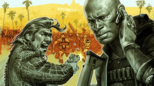 Blue Estate for Xbox One is a wild ride through a darkly comedic mafia world, powered by innovative rail shooter mechanics and an entertaining storyline. Based on the Eisner Award-nominated comic by Viktor Kalvachev, players take on the role of Tony Luciano, the chaotic son of a mafia boss, and Clarence, an ex-Navy SEAL turned reluctant hit-man, as they navigate an underworld filled with quirky enemies and outrageous missions.