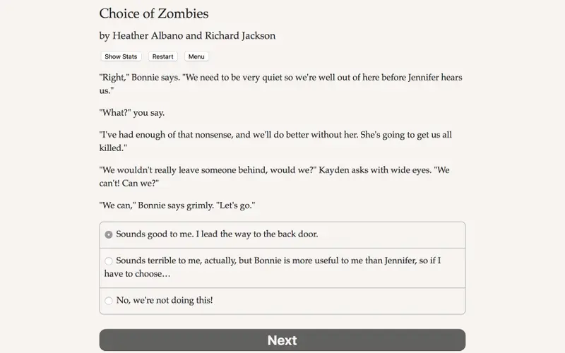 Unlike many contemporary games that rely heavily on graphics and sound effects, Choice of Zombies strips away these elements to deliver a pure story-driven experience. The absence of imagery invites players to immerse themselves in the narrative's depth, relying on vivid descriptions and their own mental imagery. It’s a unique approach that challenges you to engage with the text and envision the haunting scenarios that unfold.