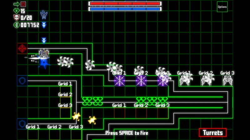 The game boasts a full spectrum of colorful turrets, each designed to exploit the weaknesses of different enemy types. The intuitive turret placement system employs a grid-based, color-coded interface, enabling players to easily strategize their defenses. Turrets come equipped with branching upgrade paths, which allow for a range of tactical approaches as you adapt to each wave’s unique threat. Selecting the correct turret and upgrades is essential for achieving victory.