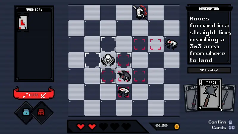 Combat within Dice Assassin revolves around card dynamics that dictate your actions. Choose from various attack cards—like Slash, Dash, Backstep, and Impact—each offering unique strengths and weaknesses. Deciding the most effective card based on the battlefield situation requires foresight and strategic planning, elevating the experience beyond simple chance encounters.