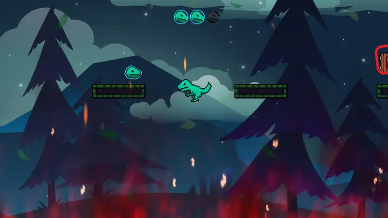 Gameplay centers around the 2D side-view platformer style, compelling players to master the control of their nimble dinosaur. You’ll run, jump, and dodge hazards, developing a rhythm that transforms each level into a tactical puzzle. Utilizing the WASD keys for movement and the Space bar for jumping, players must execute dynamic jumps and precision landings to progress through each stage. The intuitive operation lets you focus on the fast-paced action and the solving of traps scattered throughout the environment.