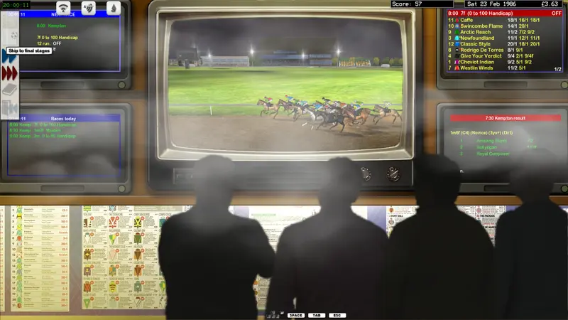 The game captures the essence of an old-fashioned, smoke-filled betting environment. It features realistic 3D horse racing visuals alongside speech synthesis technology that provides authentic commentary during races. As you place your bets and watch the races unfold through engaging audio, the commentary adds tension to your wagers. Will your chosen horse land a late surge? The fate of your evening hangs in the balance, amplifying your investment in each gamble.