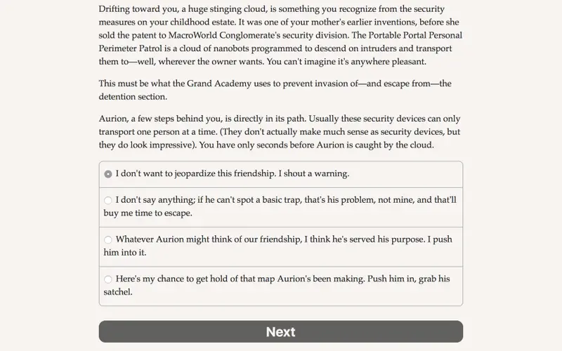 In Grand Academy for Future Villains, the PC interactive novel by Katherine Nehring, aspiring villains are invited to hone their evil skills at the premier institution designed for future nefarious leaders. With 200,000 words of text-based storytelling, players navigate a thrilling narrative where choices shape the path of their villainous careers. Is your ambition to become a wicked witch, a mad scientist, or perhaps the final boss? The Academy is where that journey begins.