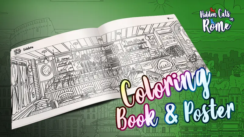 Hidden Cats in Rome - Printable PDF Coloring Book and Poster