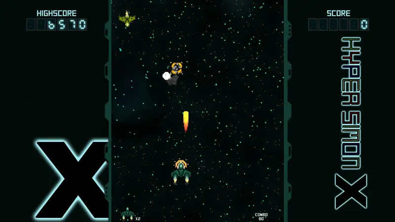 Hyper Simon X revolutionizes the arcade genre by mixing traditional Shoot 'Em Up mechanics with the classic gameplay of the 'Simon Says' memory game. Players must destroy enemy ships in the precise sequence displayed on the screen, creating a challenging and engaging experience. With each level, the sequences grow longer, pushing players to refine their skills and strategies against increasingly difficult foes.