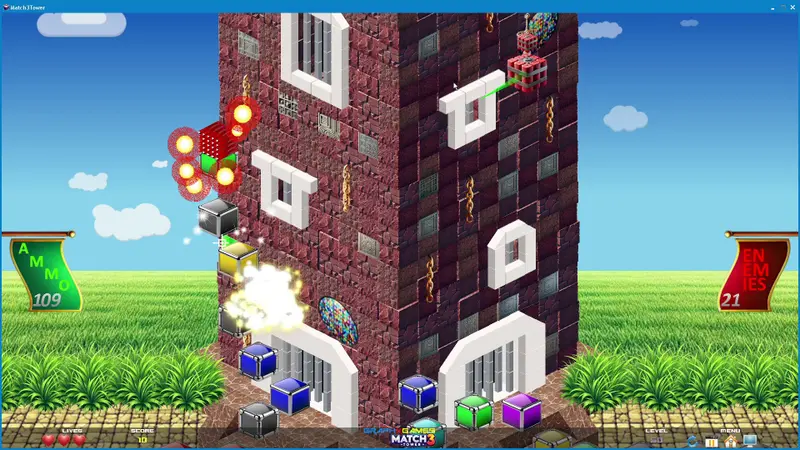 In Match3Tower, players face the exhilarating challenge of defending their tower from countless enemy invasions. Your primary goal is to protect the battle flag at the tower's peak. Should any enemy reach it, the tower will fall. With precise strikes using your magical sword, you can eliminate groups of enemies based on their color, turning the tide of battle in your favor.