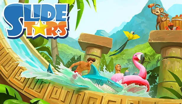 In Slide Stars, players race down outrageous water slides alongside some of the world's biggest social media personalities. This PC game invites you to partake in a thrilling water slide adventure that promises laughter, challenges, and excitement. Jump into the action with 20+ international stars, navigating everything from cheeky monkey opponents to mythical creature encounters.