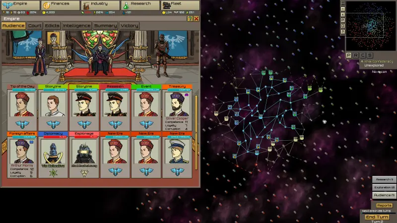 Forget about tedious micromanagement. In Stellar Monarch, you won't be moving individual ships or constructing farms. Your focus is on the grand strategy: appointing imperial officials, managing court factions, and dealing with assassins and rebels. The game abstracts these lower-level tasks, allowing you to concentrate on making impactful decisions that define your empire's trajectory.
