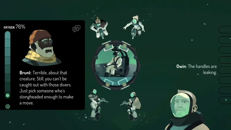 Conversation becomes a perilous game as you attempt to steer the emotional dynamics of the divers. Will you align with the Surfacers above, who guard against the horrors lurking below? Or will you support the diverse band of rebels residing in the depths? Players must carefully navigate these relationships, selecting the right diver to leverage their unique fears and motivations—critical for escaping the threatening abyss.