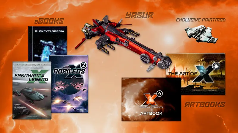 The Collector's Edition also includes previously released bonus content from the X4: Foundations Collector's Edition. This includes the X Universe Artbook and the novel "Nopileos," both available in English and German. Players will also gain access to the X Encyclopedia, providing insights and details about the expansive universe of X4. These resources serve as valuable references for players delving into the game's intricate systems and storylines.