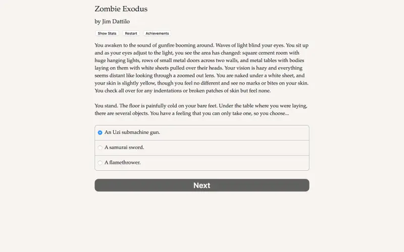 Designed specifically for PC, Zombie Exodus leverages the strengths of an interactive novel, allowing you to shape the story purely through text. Without the distraction of visual and audio effects, the game focuses exclusively on storytelling and decision-making. This approach hones in on the elements that matter most: your ability to strategize and think critically in a life-or-death scenario.