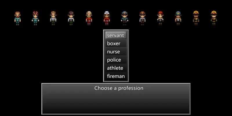 Choose from six different professions: servant, boxer, nurse, police officer, athlete, or fireman. Each career path introduces unique scenarios and choices, enhancing replayability. Players can select their character's gender, providing a customized experience. The distinct abilities of each profession influence how players will tackle challenges throughout this survival horror adventure.