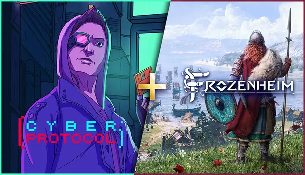 Discover a captivating bundle featuring Cyber Protocol and Frozenheim, two distinct titles that cater to different gaming appetites while offering exceptional value. This collection showcases a sharp contrast between a neon-lit puzzle adventure and a strategic Viking survival experience. Players can toggle between fast-paced mind games and intricate settlement management, all from the comfort of their PC.