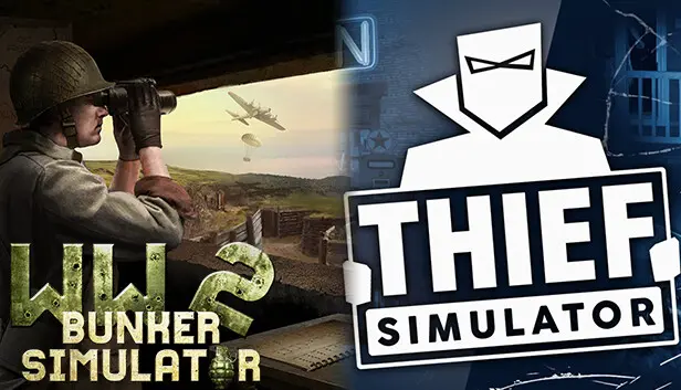 The WW2: Bunker Simulator + Thief Simulator bundle combines two distinct but equally engaging gameplay experiences on PC. This collection invites players to navigate the tactical intricacies of wartime survival and the calculated finesse of heists. Each game offers a unique perspective on strategy and execution, showcasing a blend of action and cerebral gameplay that keeps players invested.