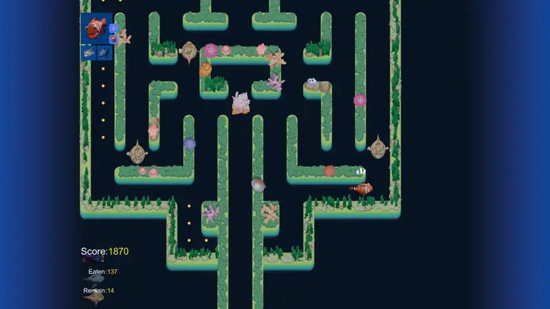 Every maze presents distinct challenges and requires players to employ clever strategies to succeed. As you dart through the terrain, be cautious of your surroundings. Some creatures, like the lurking puffer fish and fierce sharks, can ruin your day if you're not careful. Knowing when to hide or maneuver with precision is key to surviving these dangers while strategizing to complete your dot-eating mission.