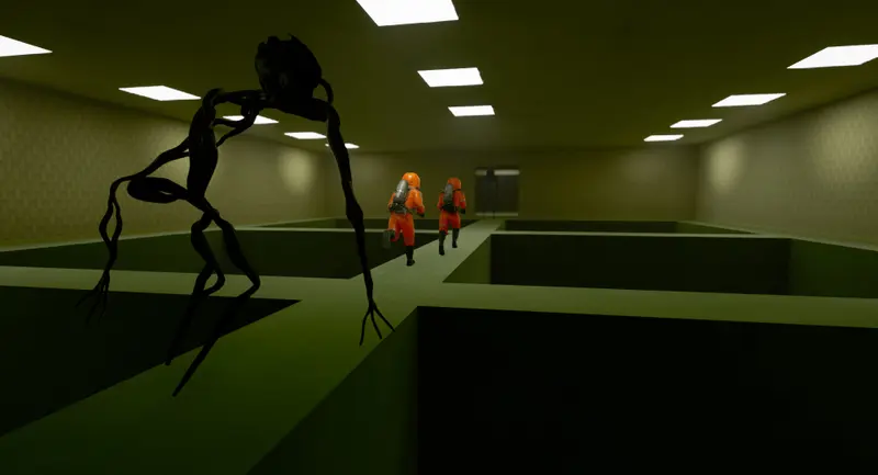 In The Backrooms Multiplayer, players step into an atmospheric horror experience inspired by the eerie internet creepypasta. As you play on PC, you and your friends will find yourselves trapped in an unsettling maze of endless, monotonous rooms, ignited by a nightmarish atmosphere that challenges both teamwork and survival instincts. The game revolves around unraveling a mysterious video while desperately trying to escape the clutches of insanity lurking around every corner.